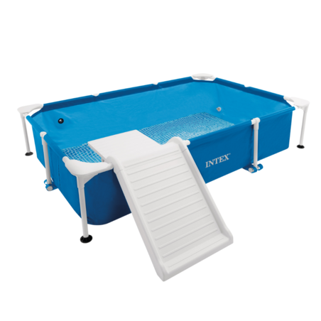 - La piscine tubulaire rectangulaire : La forme rectangulaire de la piscine offre un grand espace pour jouer et la rampe d'accès pliable permet aux plus petits chiens d'y entrer simplement. Plus volumineuse, cette piscine pour animaux convient aux chiens de taille moyenne et grande, notamment s'ils ont tendance à gratter ou mordiller les bords de la piscine.