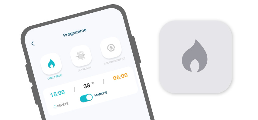 Programmer la filtration de la pompe de votre spa se fait également depuis le menu « Programme » puis sur la tuile « Filtration ».