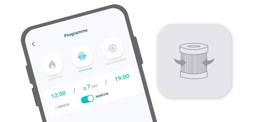 La filtration est une étape essentielle du traitement de l'eau. Optez pour une programmation automatique quotidienne pour garder une eau propre en toute simplicité :