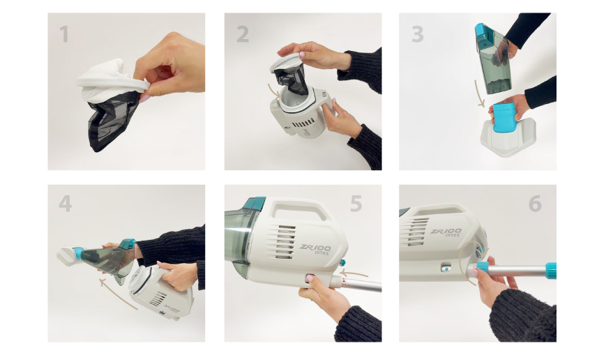 4. Clipsez le couvercle au corps de l'aspirateur