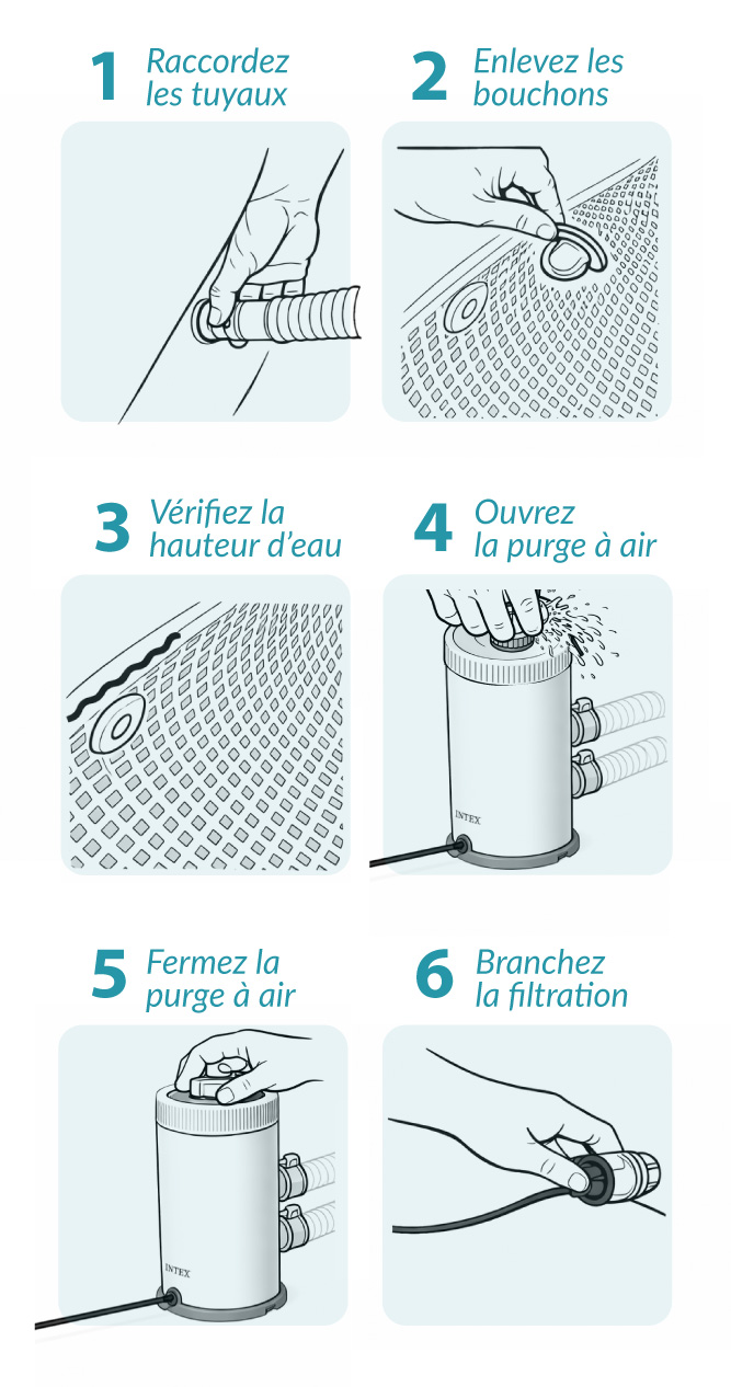 Amorcer votre filtration se fait très simplement et en seulement quelques étapes :