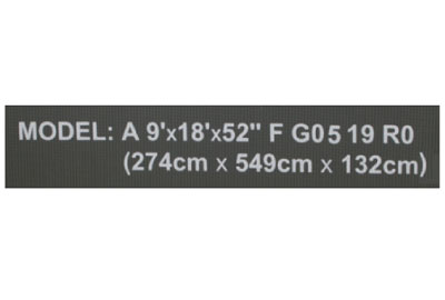 Exemple : (MODEL : A 9’x18’x52 ‘’ F G05 19 R0)