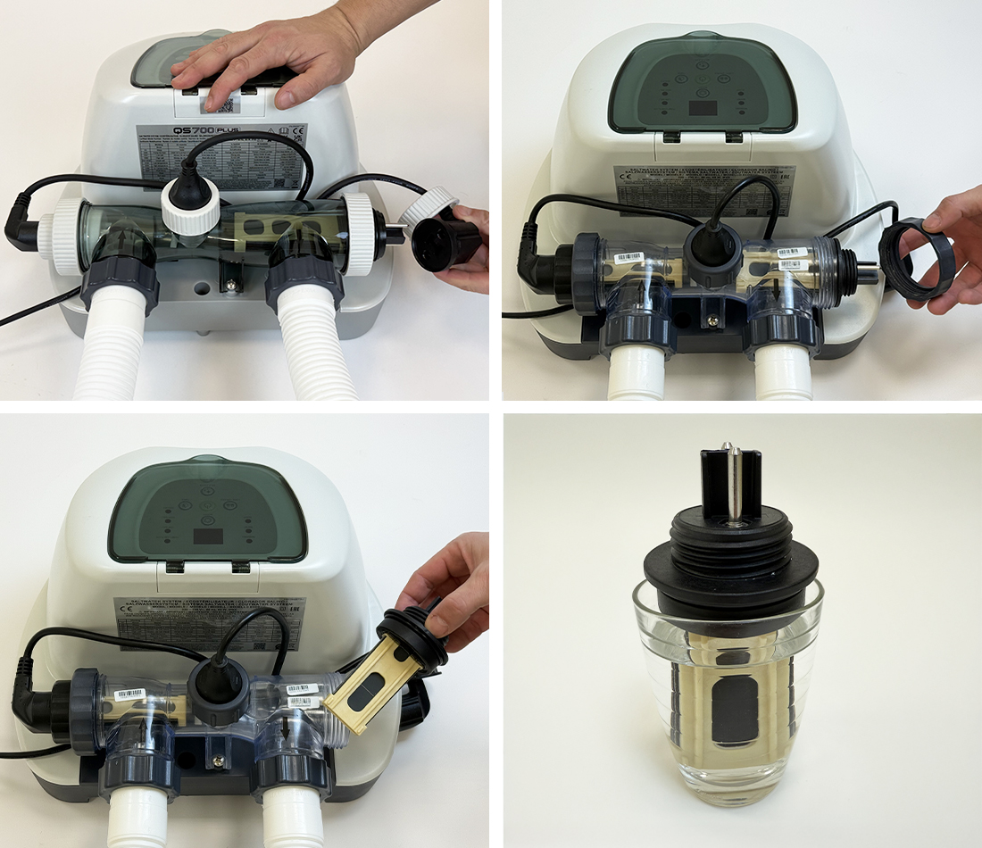 Grâce à son cycle d’auto-nettoyage, l’électrolyseur au sel QS500 vous permet de réaliser cette opération automatiquement :