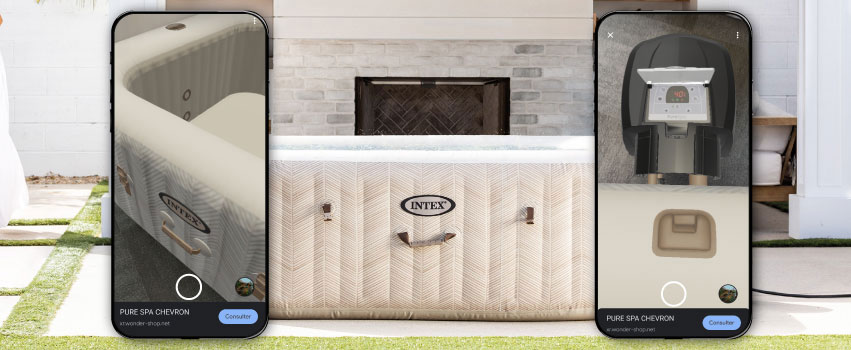 Certains de nos portiques-balançoires, spas gonflables et piscines peuvent être visualisés grâce à la réalité augmentée.