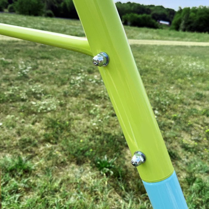 Pour la sécurité de vos enfants avant tout, ce portique est durable et robuste. Conçue en tubes galvanisés, la structure résiste à la rouille pour durer plus longtemps et permettre aux enfants de grandir avec leur nouveau jeu. Avec ses chaînes en plastisol et ses tubes résistants à la rouille, il résiste aux intempéries, et vous pourrez en profiter toute l'année. Le système d'ancrage fournit une stabilité supplémentaire au portique-balançoire 3 agrès et favorise la sécurité de vos enfants.