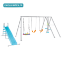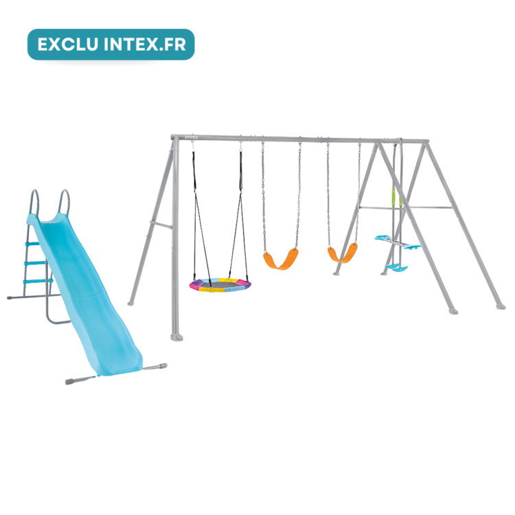 Offrez à vos enfants des heures de joie et d'aventure avec ce portique Intex, une véritable invitation à l'évasion dans votre jardin. Avec son nid d'oiseau accueillant, ses deux balançoires virevoltantes, son face-à-face amusant et son toboggan qui fait fuser la vitesse, ce portique invite vos enfants à se défouler et à s'amuser dans votre jardin. Entre 3 et 10 ans, laissez-les s'inventer mille et une histoires en se balançant ensemble, entre amis ou en famille, tandis que les couleurs vives des agrès apportent une touche de gaieté au design gris, moderne et élégant, de la structure. Conçu pour durer dans le temps, ce grand portique devient un véritable lieu d'amusement et de partage en extérieur. Facile à monter, il vous invite à l'installer rapidement pour des moments de plaisir sans fin.Amusement assuré
