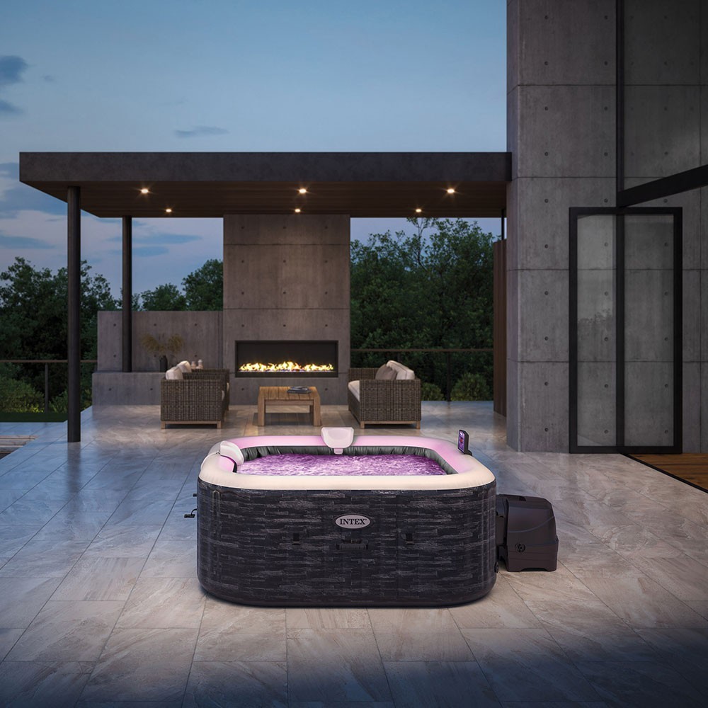 Détendez-vous toute l'année dans le spa INTEX 4 places Ardoise entouré de vos proches pour des moments de partage et de détente. Avec son design effet pierres grises moderne et élégant, ce spa gonflable Intex s'intègre parfaitement dans n'importe quel espace extérieur, ajoutant une touche de modernité à votre jardin. Donnez vie à vos envies en choisissant la température du spa, les bulles que vous souhaitez, le mode d'éclairage et la couleur des LED. Pour plus de sérenité, divers accessoires sont livrés avec ce PureSpa.Un moment de pure détente